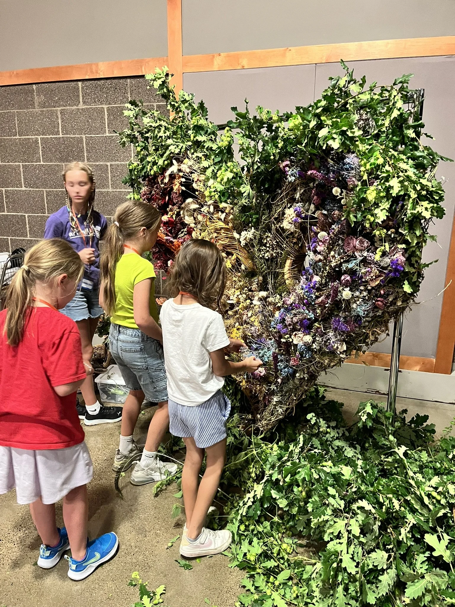 The kids at Sherwood Center for the Arts helped to pull all of her flowers out last summer and then used them for their projects throughout art camp. They helped me re-wrap her with more twine, as she has been wrapped over and over again, to hold her growing foundation tight and secure.